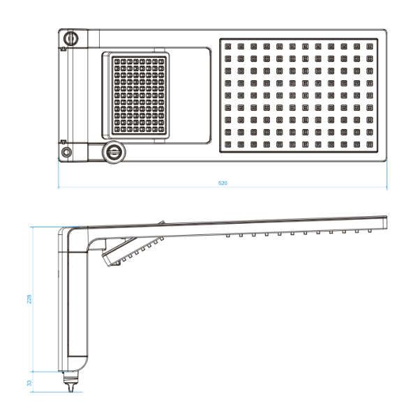 Salida de agua rectangular de amplio alcance. Además de una salida opcional en Diagonal.